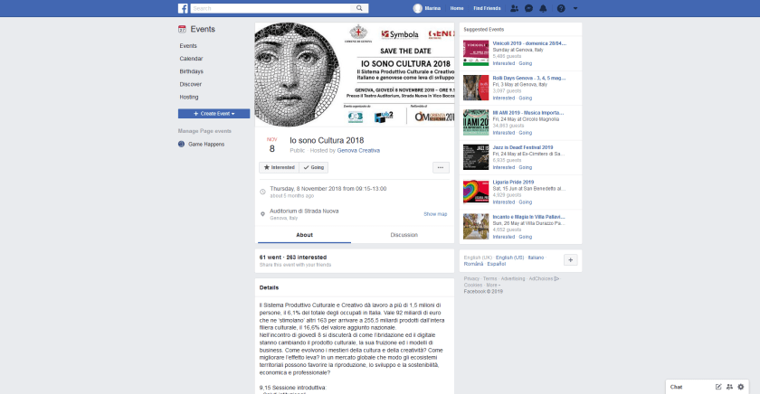 - Io sono Cultura 2018 (Nov 8th, 2018 @ Auditorium di Strada Nuova, Genova)